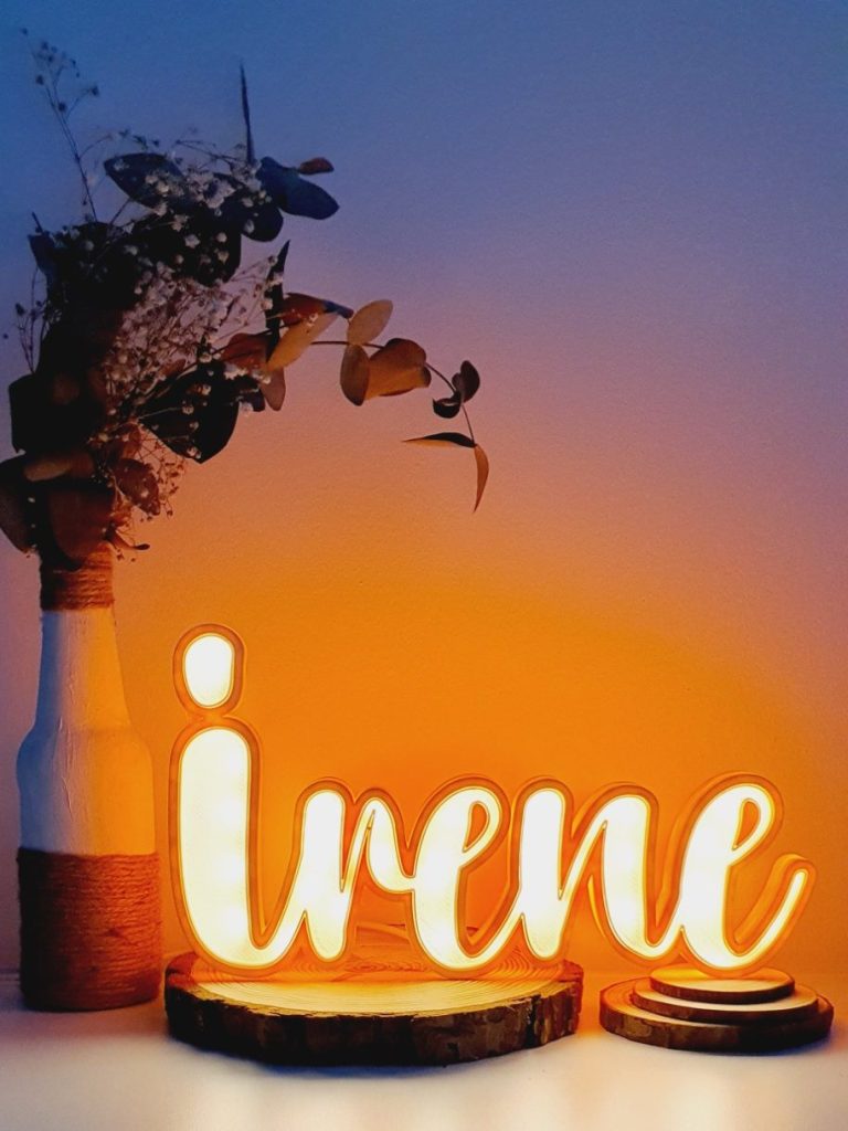 Lámpara realizada en 3D con leds e interruptor con tu nombre o de la persona que tu quieras, una bonita lámpara de noche, un regalo original.